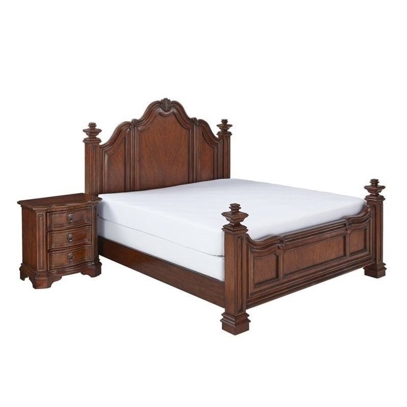![]() Bowery Hill - Bedroom Sets - BH523871 - Designed with classical renaissance in mind, this product is fit for royalty. This carved European-styled king bed and nightstand accentuates any bedroom décor and is crafted from genuine mahogany solids and book matched cathedral-grained American cherry veneers. Design features include heavily carved solid wood moldings and solid wood shaped carved posts and feet. Nightstand features carved details, veneer inlay top and three storage drawers that features mitered cut framed drawer fronts. Exquisitely accented with antiqued bronze bell pull hardware with white wax hang-up. Set includes king bed and nightstand. Finish and measurements may vary slightly. Assembly required.Cognac finish; Made of mahogany solids/cathedral grained cherry veneers; Book matched cathedral grained American cherry veneers; Carved details; Genuine mahogany solids; Antiqued bronze bell pull hardware. Specifications:Overall Product Weight: 453 lbs; Bed Dimensions: 64.75""H x 81""W x 6.5""D; Nightstand Dimensions: 26""H x 18""W x 30""D. Price: 2167.99 |
