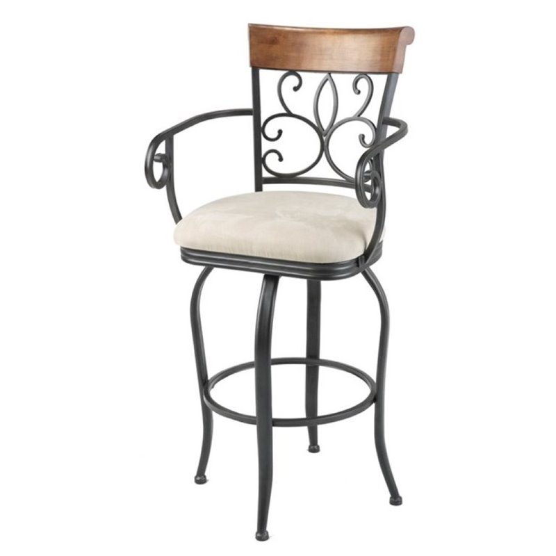 ![]() Bowery Hill - Bar Stools - BH497452 - Dark Roast metal, Chestnut finished wood and Sand microfiber work together to create the striking bar stool. Arm rests and a swivel seat lend a sense of comfort and support to this piece, which feels comfortable and inviting in your home. Swirling scrolls in the seatback keep this stool fun and relaxing.Swivel-seatChestnut finished woodDark Roast metal,Specifications:Overall Product Dimension: 47""H x 22.25""W x 22.25""D Weight: 34.3lbs Price: 221.26 |