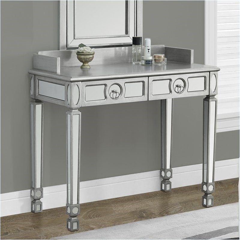 | Bowery Hill 36"" 2 Drawer Mirrored Bedroom Vanity in Brushed Silver |