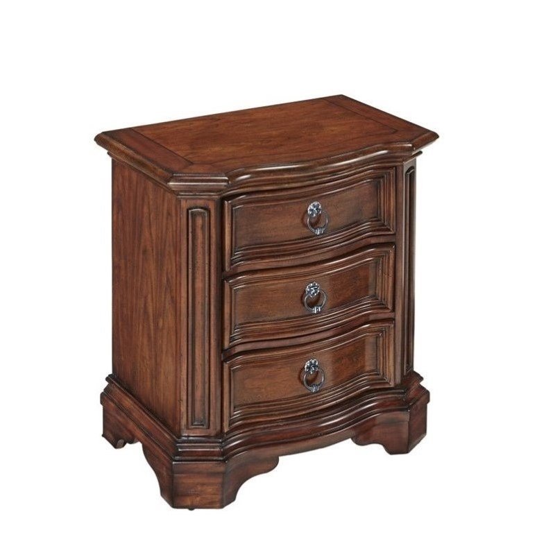 ![]() Bowery Hill - Nightstands - BH523703 - Designed with classical renaissance in mind, this product is fit for royalty. This carved European-styled nightstand accentuates any bedroom décor and is crafted from genuine mahogany solids and book matched-cathedral grained American cherry veneers. Features include carved details, veneer inlay top, and three storage drawers that features mitered cut framed drawer fronts. Exquisitely accented with antiqued bronze bell pull hardware with white wax hang-up. Finish and measurements may vary slightly. Assembly required.Cognac finish; Made of mahogany solids/cathedral grained cherry veneers; Book matched cathedral grained American cherry veneers; Carved details; Antiqued bronze bell pull hardware; Mitered cut framed drawer fronts. Specifications:Overall Product Dimensions: 30"" H x 26"" W x 18"" D; Overall Product Weight: 84 lbs. Price: 417.99 |