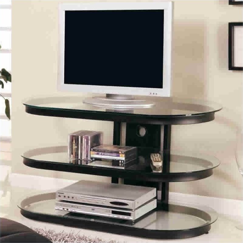| Bowery Hill 42"" Contemporary Metal and Glass TV Stand in Black |