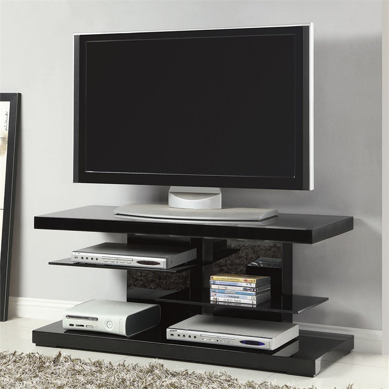 | Bowery Hill 47"" TV Stand in Black with Alternating Glass Shelves |
