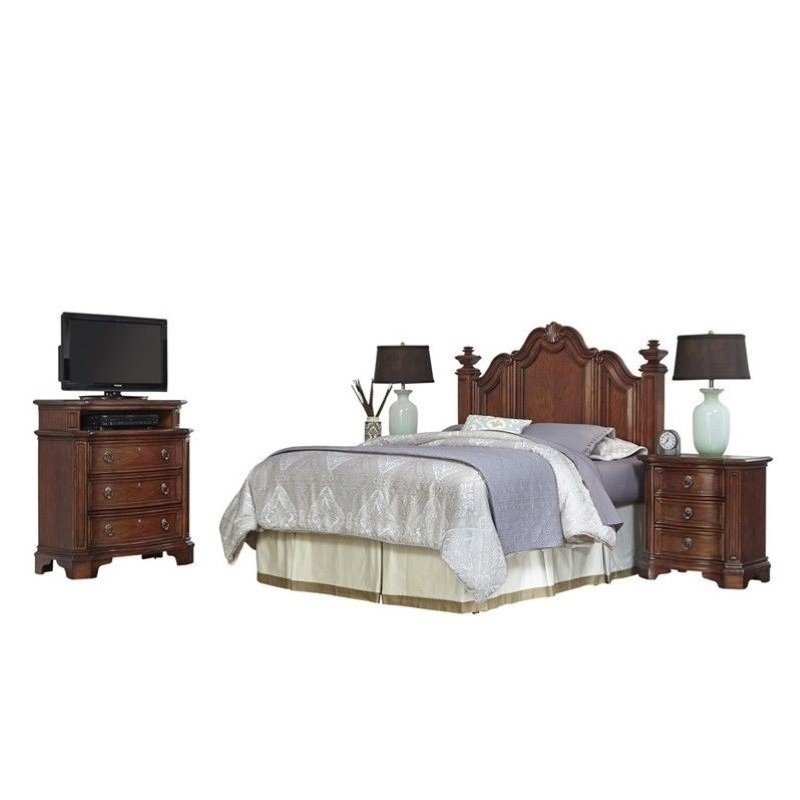 ![]() Bowery Hill - Bedroom Sets - BH523908 - Designed with classical renaissance in mind, this product is fit for royalty. This carved European-styled Headboard, two nightstands, and media chest accentuates any bedroom décor and is crafted from genuine mahogany solids and book matched cathedral-grained American cherry veneers. Design features include heavily carved solid wood moldings and solid wood shaped carved posts and feet. Headboard is compatible with most queen or full bed frames. Each nightstand features veneer inlay top and three storage drawers that features mitered cut framed drawer fronts. Media chest features carved veneer inlay top, three storage drawers that features mitered cut framed drawer fronts and decorative key impressions. Exquisitely accented with antiqued bronze bell pull hardware with white wax hang-up. Set includes Headboard, two nightstands, and media chest. Finish and measurements may vary slightly. Assembly required.Cognac finish; Made of mahogany solids/cathedral grained cherry veneers; Book matched cathedral grained American cherry veneers; Carved details; Genuine mahogany solids; Antiqued bronze bell pull hardware. Specifications:Overall Product Weight: 439 lbs; Headboard Dimensions: 64.75""H x 64""W x 6.5""D; Nightstand Dimensions: 26""H x 18""W x 30""D; Media Chest Dimensions: 39""H x 18.5""W x 43.75""D. Price: 2239.99 |