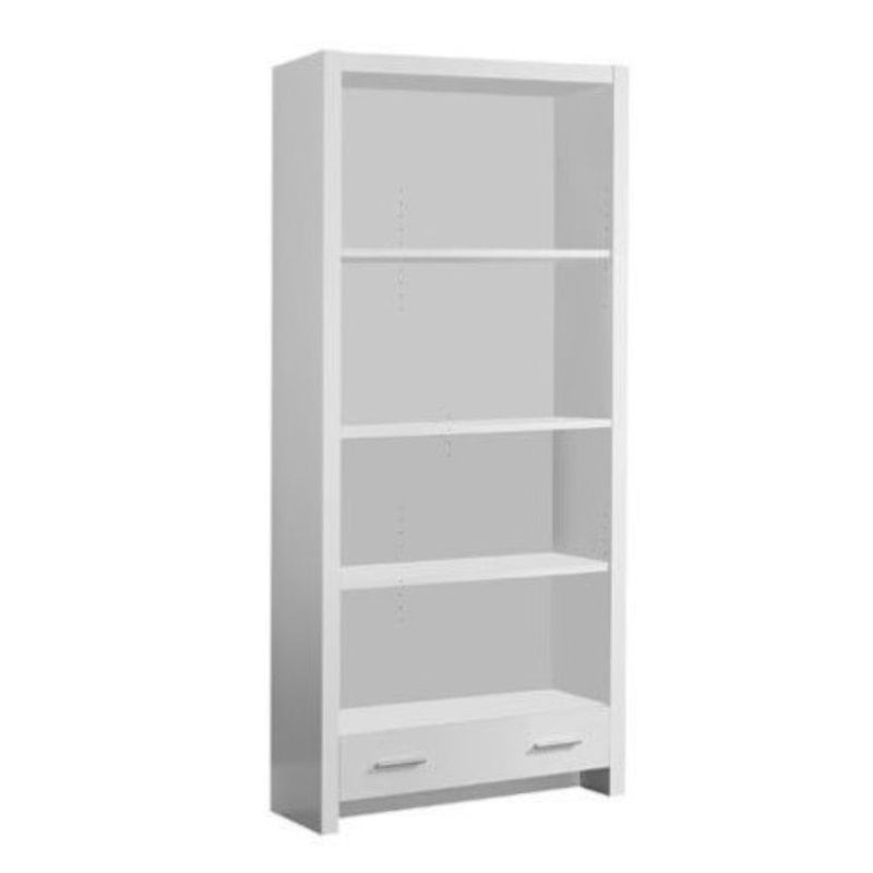 | Bowery Hill 4 Shelf Bookcase with Storage Drawer in White |