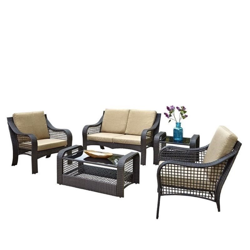 | Bowery Hill 5 Piece Patio Sofa Set in Deep Brown |