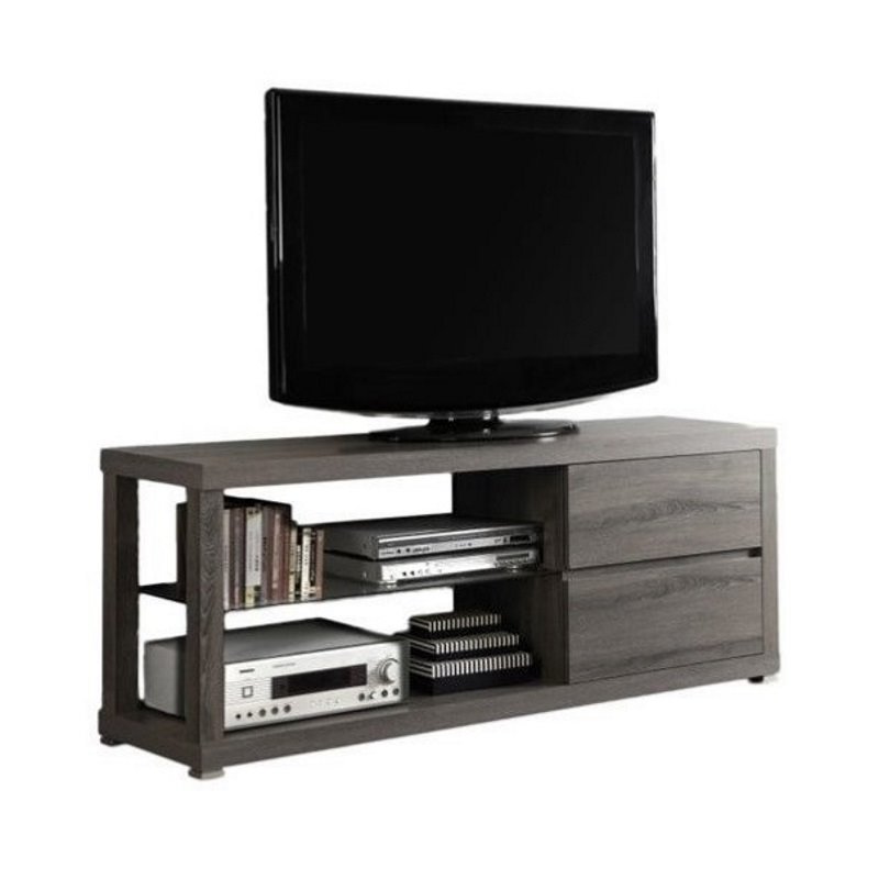 ![]() Bowery Hill - TV Stands - BH499592 - Enhance your living space with this 60"" long dark taupe, reclaimed, wood-look TV console. Featuring a chic tempered glass center shelf and 2 generously sized storage drawers this TV console is functional without sacrificing style. Thick panels and clean lines complete the look and make this piece the perfect addition to any home. Finish: dark taupe; Includes 2 large storage drawers and 2 tempered center glass shelves; Thick panel construction; Clean lines; Accommodates up to a 60"" flat panel TV; Drawer inside dimensions: 9.5"" h x 20"" w x 14"" d; Reclaimed look. Specifications:Overall Dimensions: 24"" H x 60"" W x 18"" D; Product Weight: 79 lbs. Price: 314.99 |