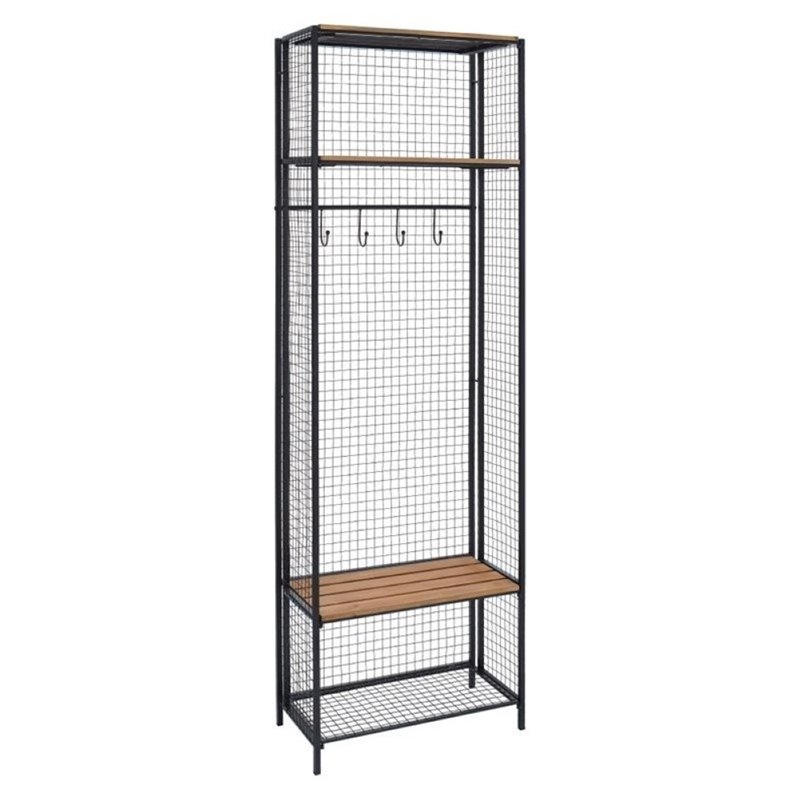 ![]() Bowery Hill - Coat Racks - BH620842 - Blending form and function, this Grid Metal and Wood Locker Coat Rack makes a handsome addition to any living or office area. With two shelves that hold up to 15lbs and a folding coat rack with 4 sliding hooks this Locker is an innovative way to store your coats and other belongings. The Iron grid frame has a black matte rustic distressed finish and the shelves are made of Fir Wood slats. This locker will accentuate a variety of color styles and decor. Materials: Metal, WoodFinish: Black Matte Rustic DistressedRustic/Industrial Design and StyleFolding Coat RackFour hooks for storageMultiple shelves for additional storageSome Assembly RequiredSpecifications:Overall Product Dimensions: 72"" H x 24.25"" W x 12"" DProduct Weight: 31 lbs Price: 349.88 |