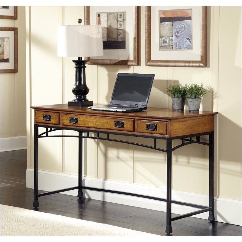 ![]() Bowery Hill - Computer Desks - BH427730 - Reminiscent of the American Craftsman Era with understated style and simplicity, the Executive Desk by marries a traditional Distressed Oak finish on Poplar Solids with Oak Veneers and new age brown metal accents. The Executive Desk is equipped three drawers, one multi-function drop-down front center drawer with cable access; it can function as a keyboard tray or a large storage drawer, and two side storage drawers. All drawers are side mounted with easy-glide metal drawer guides. The only assembly required is attaching legs and stretchers. Desk is completed finished on all four sides. Size 54w 24d 30h. Work Space is approximately 1300 Square Inches.Distressed Oak and Deep Brown; Poplar Solids and Oak Veneers; Multi-Function Drop-Down Front Center Drawer; Work Space of 1300 Square Inches; Two Side Storage Drawers. Specifications:Overall Product Dimensions: 30"" H x 54"" W x 24"" D; Overall Product Weight: 110 lbs. Price: 551.99 |