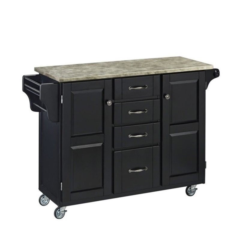 | Bowery Hill Concrete Top Kitchen Cart in Black |