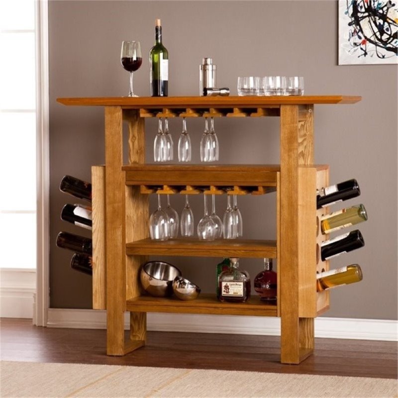 ![]() Bowery Hill - Wine Racks - BH656656 - Clean simplicity creates quiet elegance in this handsome weathered oak console bar. Airy and open shelving, glassware racks, and bottle holders organize your hosting needs with ease while the ample tabletop provides excellent space for serving appetizers and cocktails or displaying your dapper stemware collection. Speak midcentury volumes in your dining room, hall, or parlor with this unassumingly cool console.Finish: Weathered OakMaterial: Manufactured Wood, Veneer, China OakTransitional midcentury modern style All wood look creates clean simplicityConvenient slim design, bar height excellent for small spacesFeatures 10 glassware racks and 3 open shelvesRiddling sides for bottle storageFits 16 standard size wine bottlesSpecifications:Overall Product Dimension: 42.5"" H x 47.25"" W x 15.5"" DProduct Weight: 94 lbsSupports up to: 50 lbs (console top), 20 lbs (each shelf) Price: 548.26 |