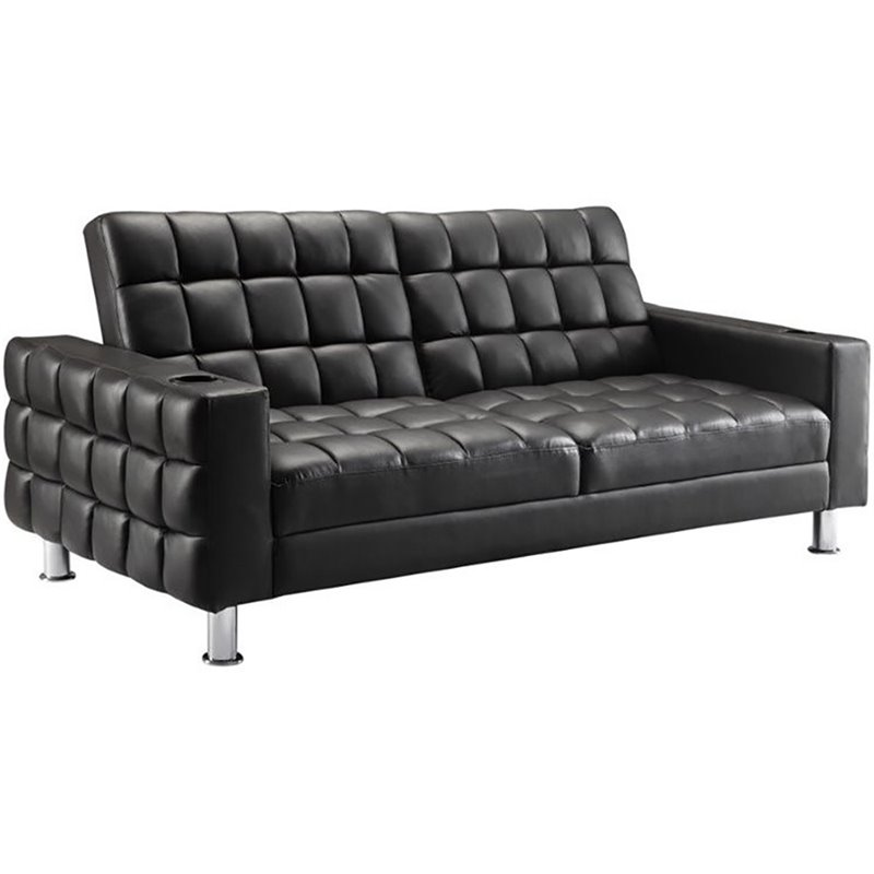 | Bowery Hill Convertible Sofa with Cup Holders in Dark Brown |