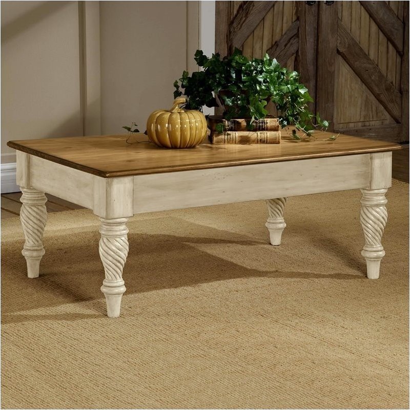 | Bowery Hill Distressed Rectangular Cocktail Table in White |