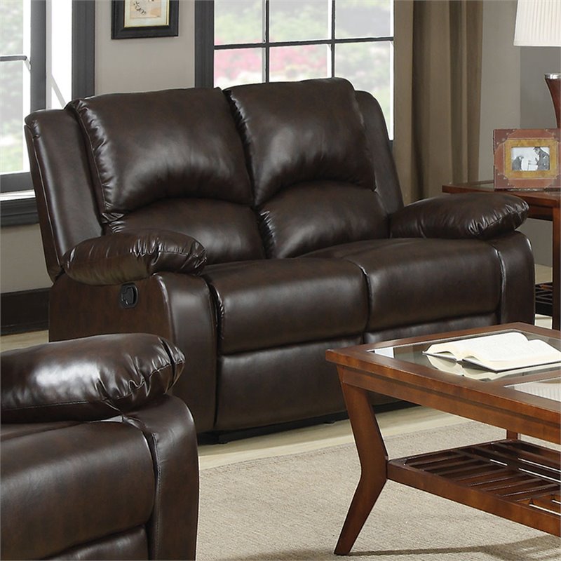 | Bowery Hill Double Reclining Faux Leather Loveseat in Brown |