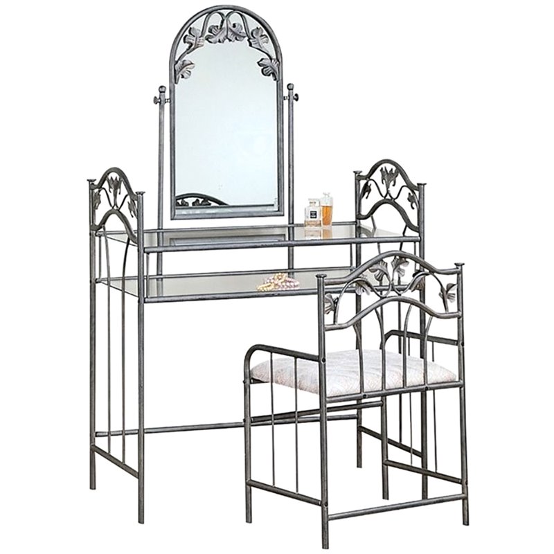 | Bowery Hill Flower Pattern Vanity Table Set with Mirror in Nickel-Bronze Finish |