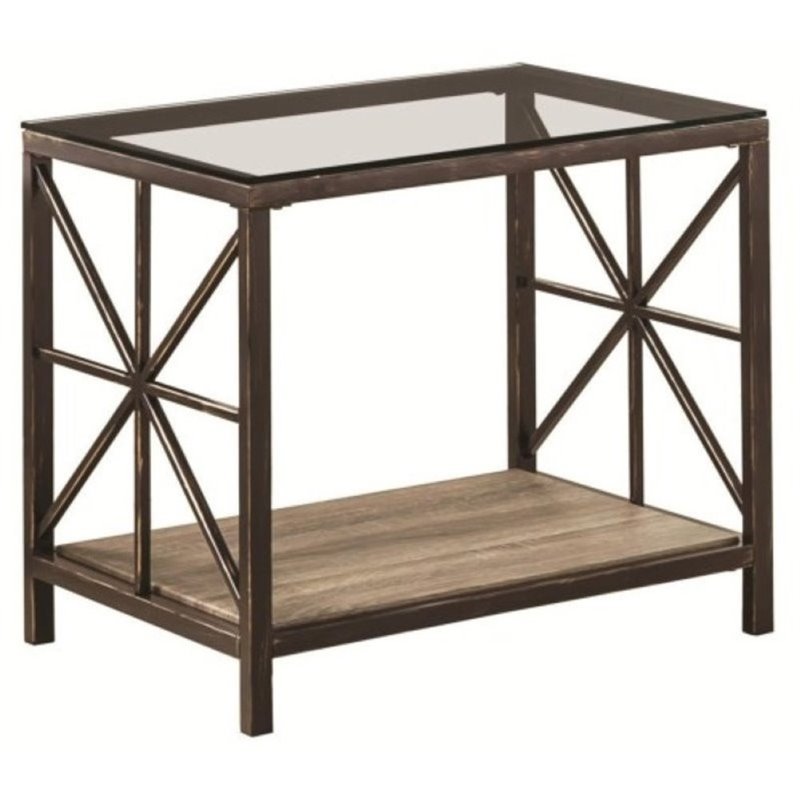 Bowery Hill Glass Top End Table in Black Brush Gold