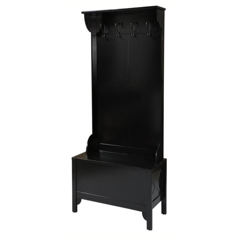 ![]() Bowery Hill - Hall Trees - BH384960 - Keep your mud room or entryway neat and tidy with this beautiful and unique hall tree with storage bench. Spacious spli top seating area flips up to reveal a large storage section. A back panel with four hooks is perfect for hats and coats. Rich Antique Black finish with red rub through for that ""distressed"" look. This hall tree will provide function and style to any room. Material:Pine, MDF, 4 hooks, 2 safety hinges, solid seat; Provides function and style to any room in your home. ; Features four coat hooks; Solid seat; Includes spring loaded lid stays to keep the seat from slamming. ; Distressed Antique Black finish with red rub through. Specifications:Overall dimensions: 40""w x 18""d x 64""h; Weight limit: 250lbs; Some Assembly Required. Price: 236.93 |