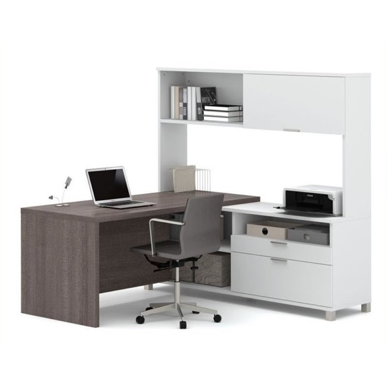| Bowery Hill L-Desk with Hutch in White and Bark Gray |