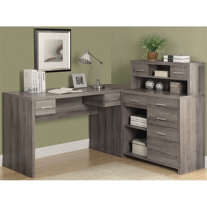 | Bowery Hill L Shaped Computer Desk with Hutch in Dark Taupe |