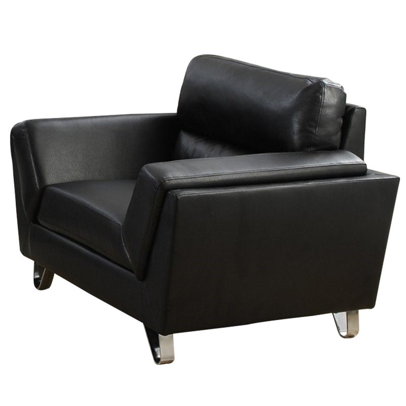 ![]() Bowery Hill - Accent Chairs - BH499506 - Upholstered in an elegant black bonded leather, this chair attracts immediate attention with a unique contemporary design. Featuring a padded back and angled arms, this chair showcases sturdy chrome metal legs to complete the look. Finish: black; Made of bonded leather and chrome metal; Contemporary style; Upholstered; Padded back and seat cushion; Angled arms. Specifications:Overall Dimensions: 36"" H x 42"" W x 36"" D; Product Weight: 62 lbs. Price: 686.99 |
