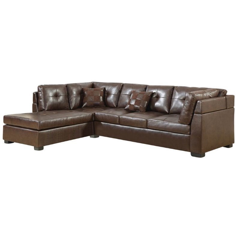 | Bowery Hill Leather Left Facing Sectional Sofa in Brown |