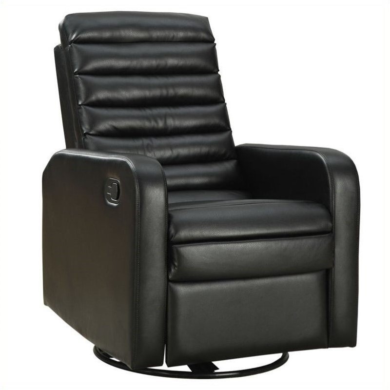 | Bowery Hill Leather Swivel Glider Recliner in Black |