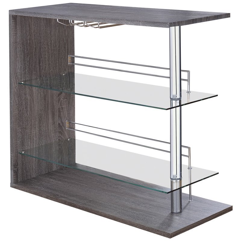 Bowery Hill - Pub Tables - BH532309 - Finish: Dark Gray; Material: Glass; 2 Glass Shelves; Wine Holder. Specifications:Product Dimensions: 44""H x 42.75""W x 15.75""D; Product Weight: 95 lbs.