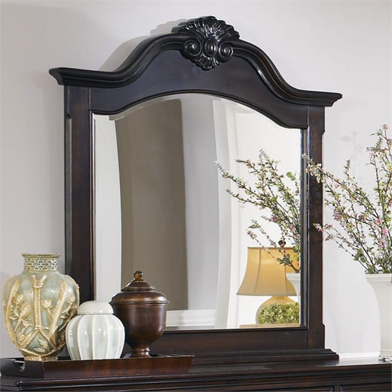 Bowery Hill Shell Carving Mirror in Dark Cherry