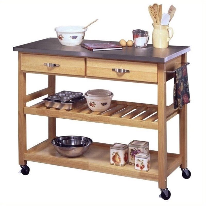 | Bowery Hill Stainless Steel Kitchen Cart in Natural |