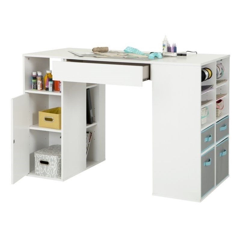 | Bowery Hill Storage Craft Table in White |