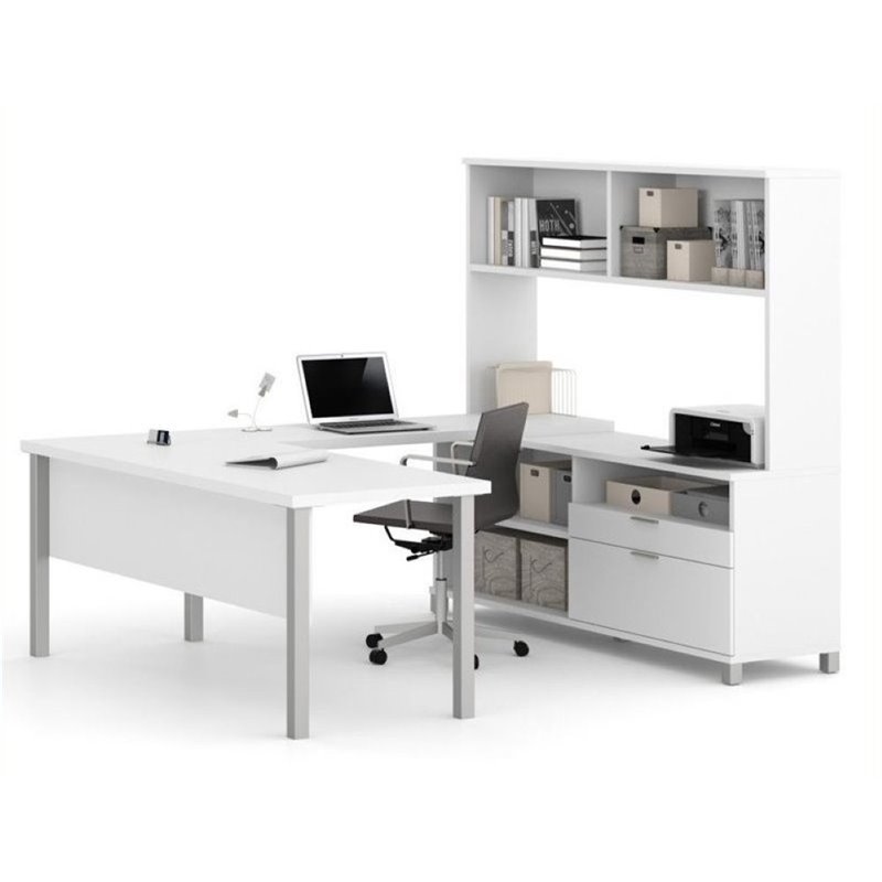 | Bowery Hill U Shaped Computer Desk with Hutch in White |